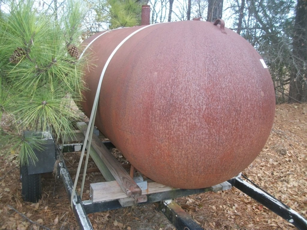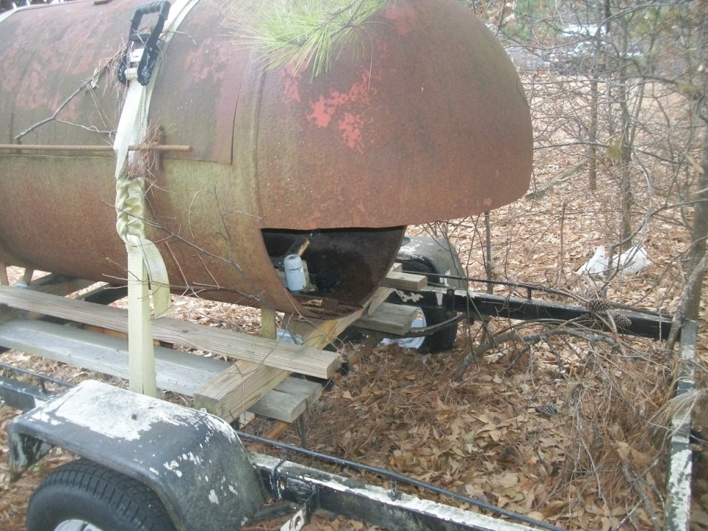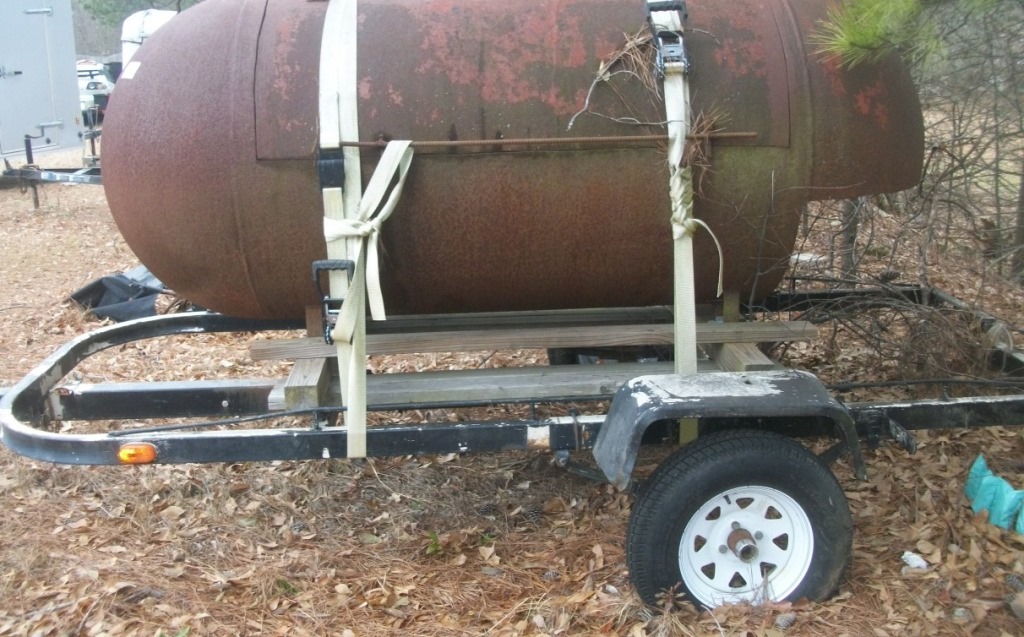 This was a smoker build that unfortunately never finished. 500 lb propane tank on an old boat trailer. See pictures for further details and condition. No VIN, No Title