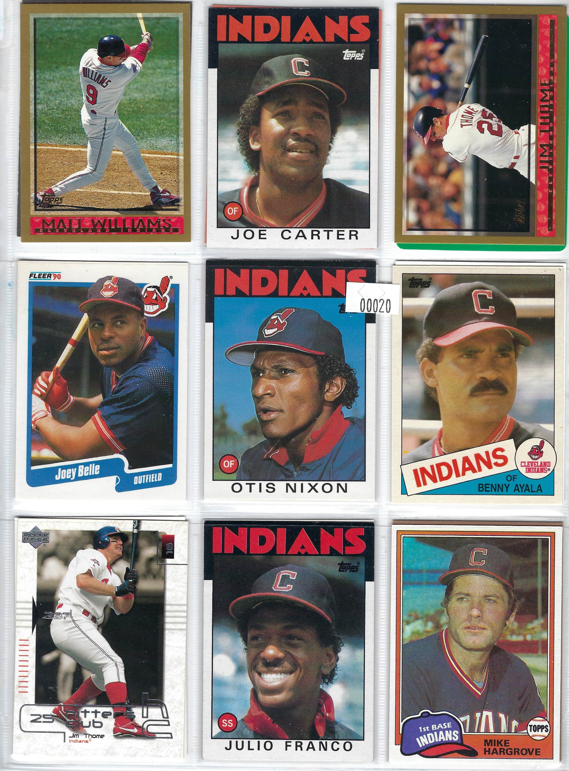 9-pocket binder pages filled with professional baseball trading cards from roughly the early 1990s through the early 2000s.